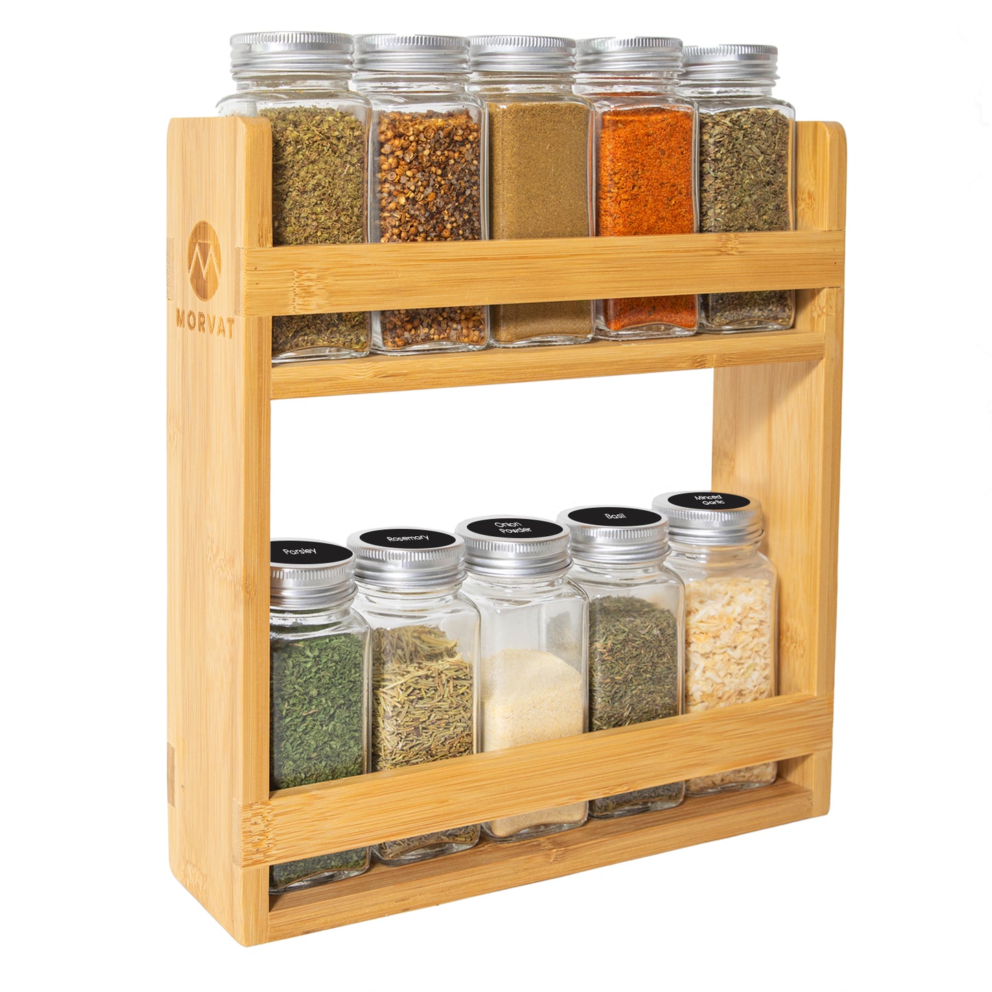 Morvat Premium Bamboo Wooden Spice Jar Organizer Rack with Optional 10 Jars
