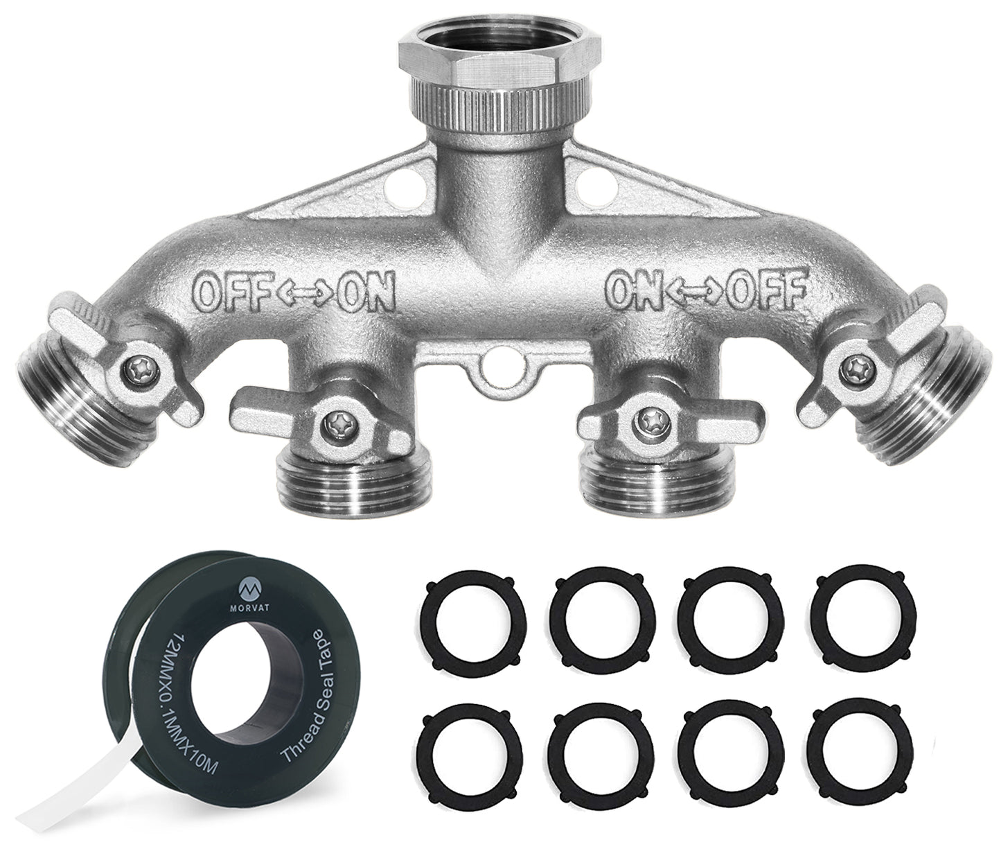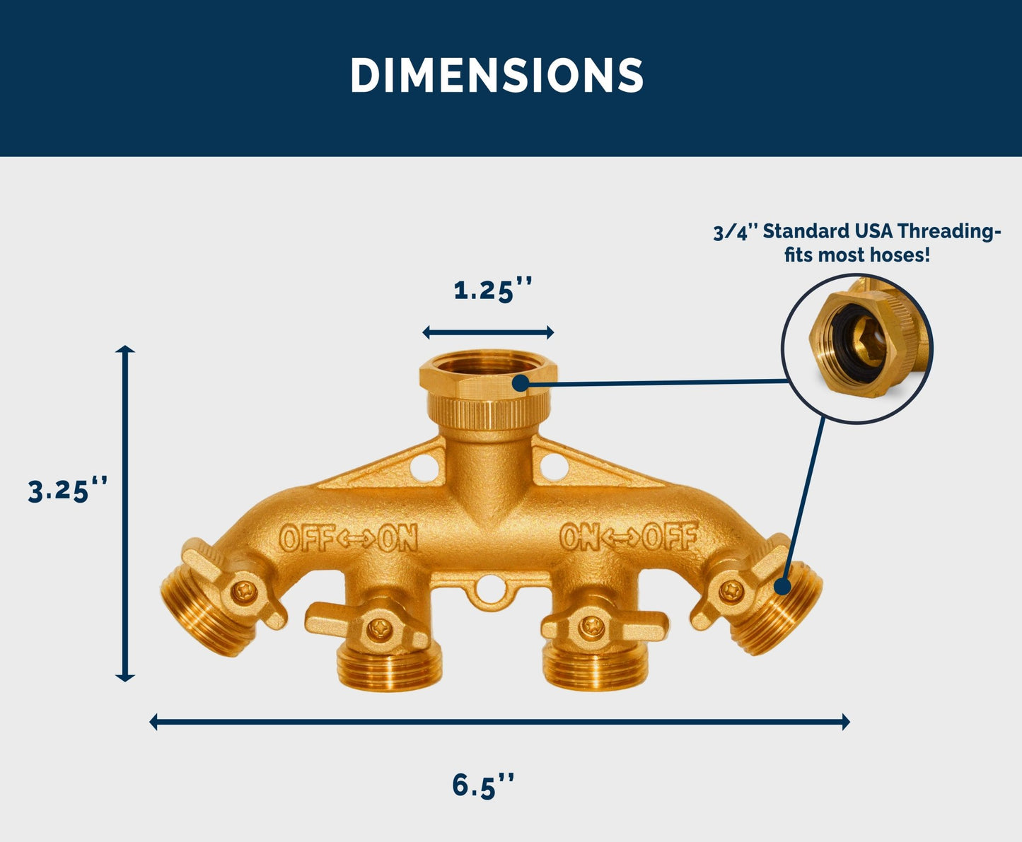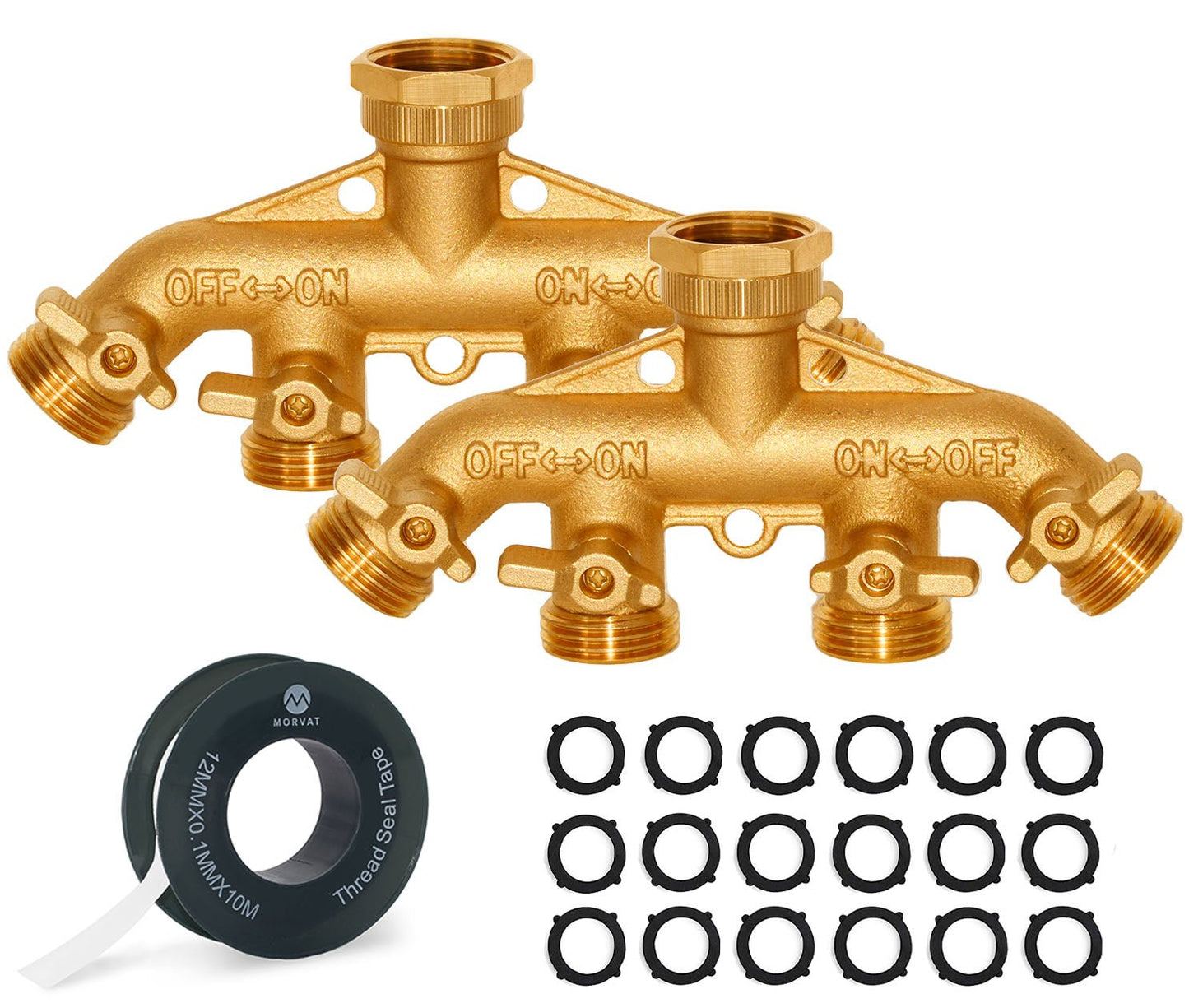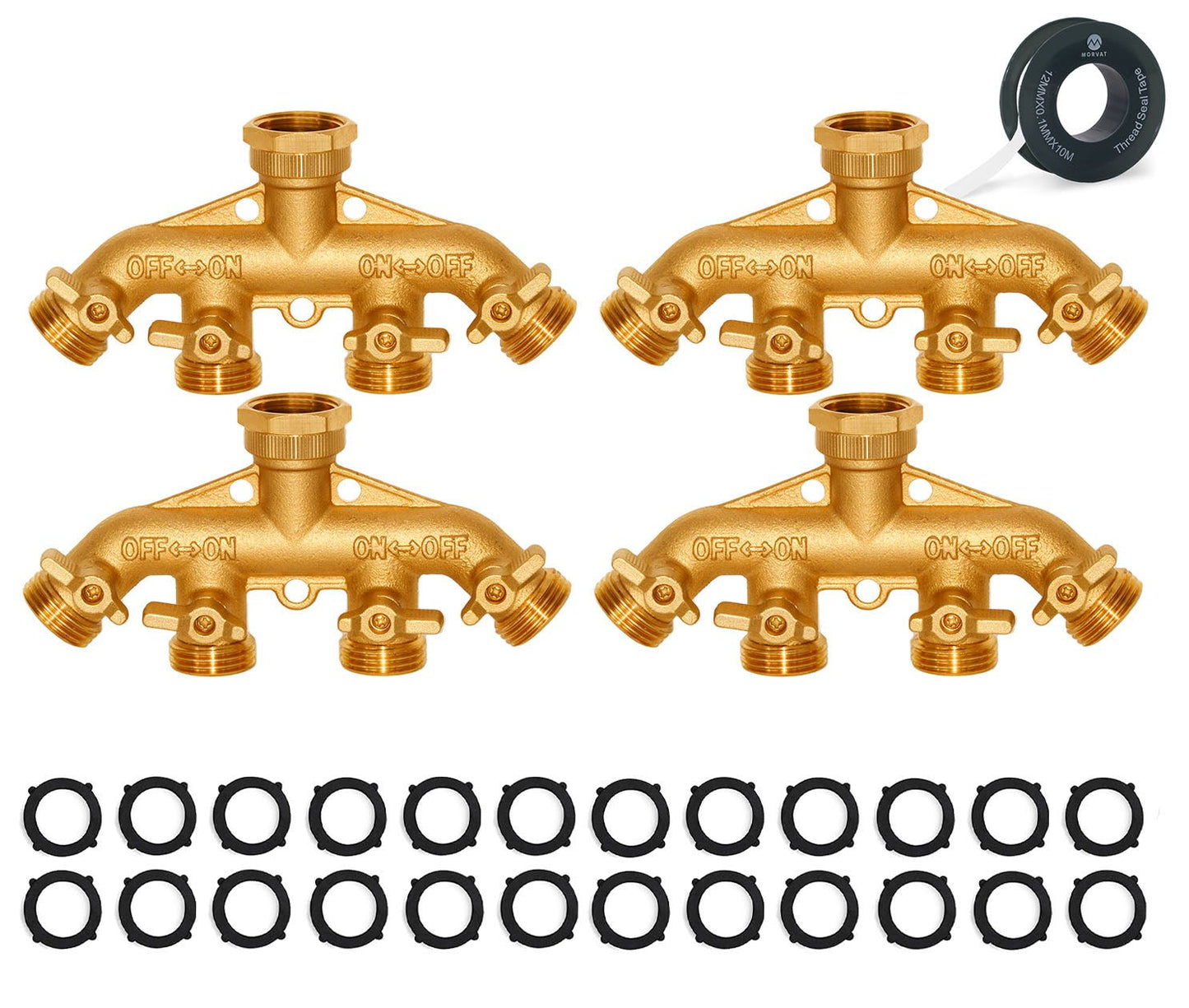 Morvat Heavy Duty Hexagonal Brass 4 Way Garden Hose Y Splitter