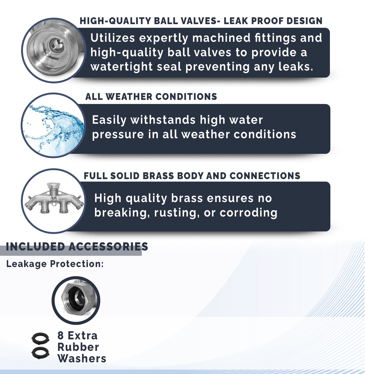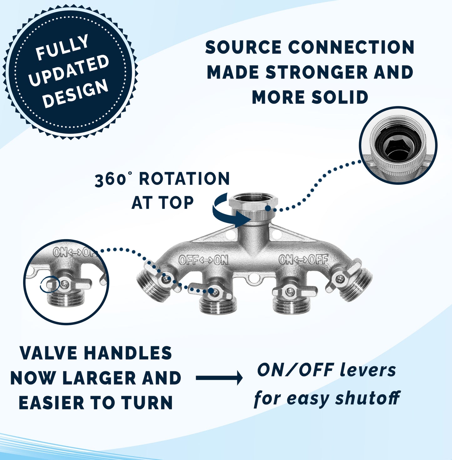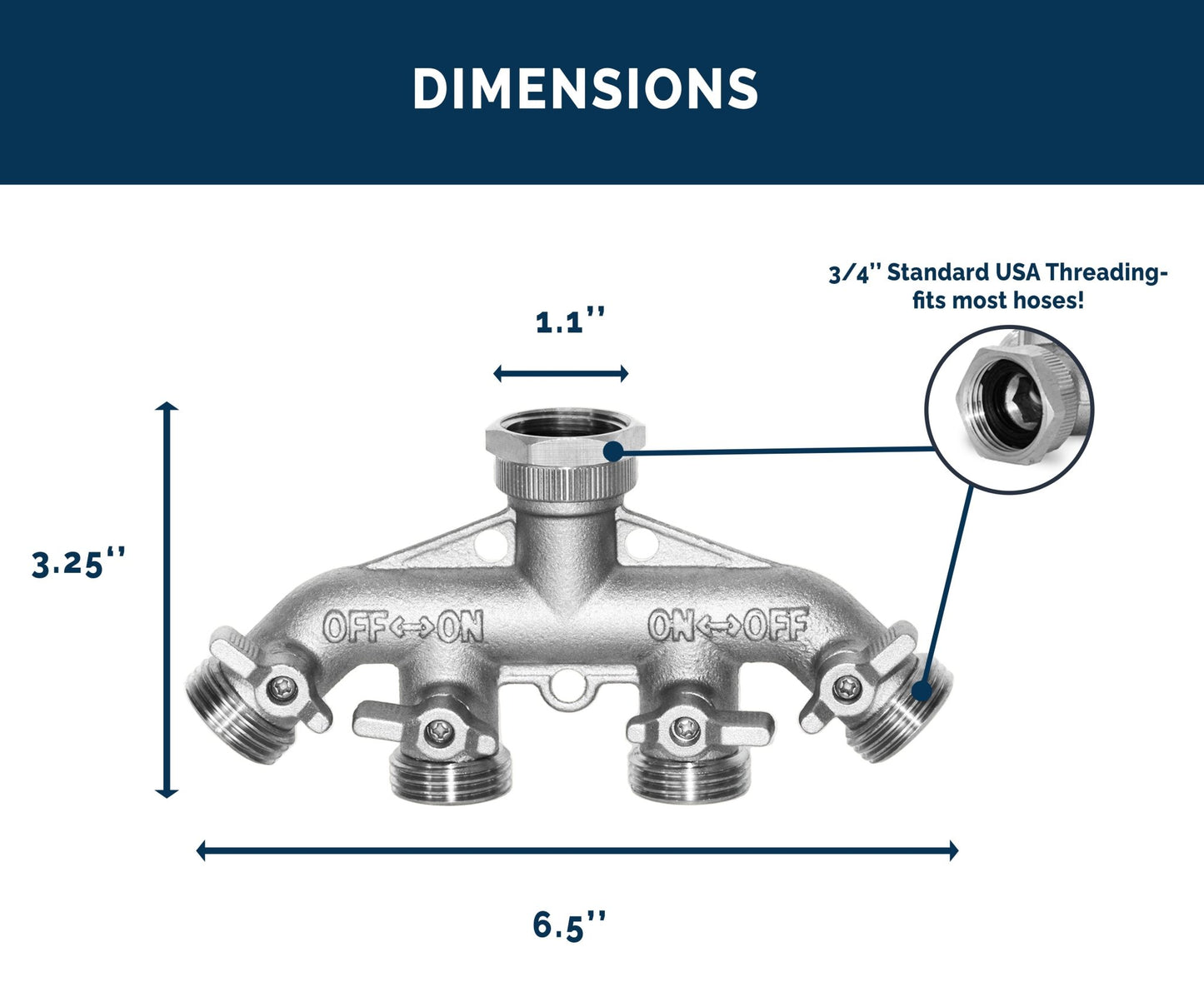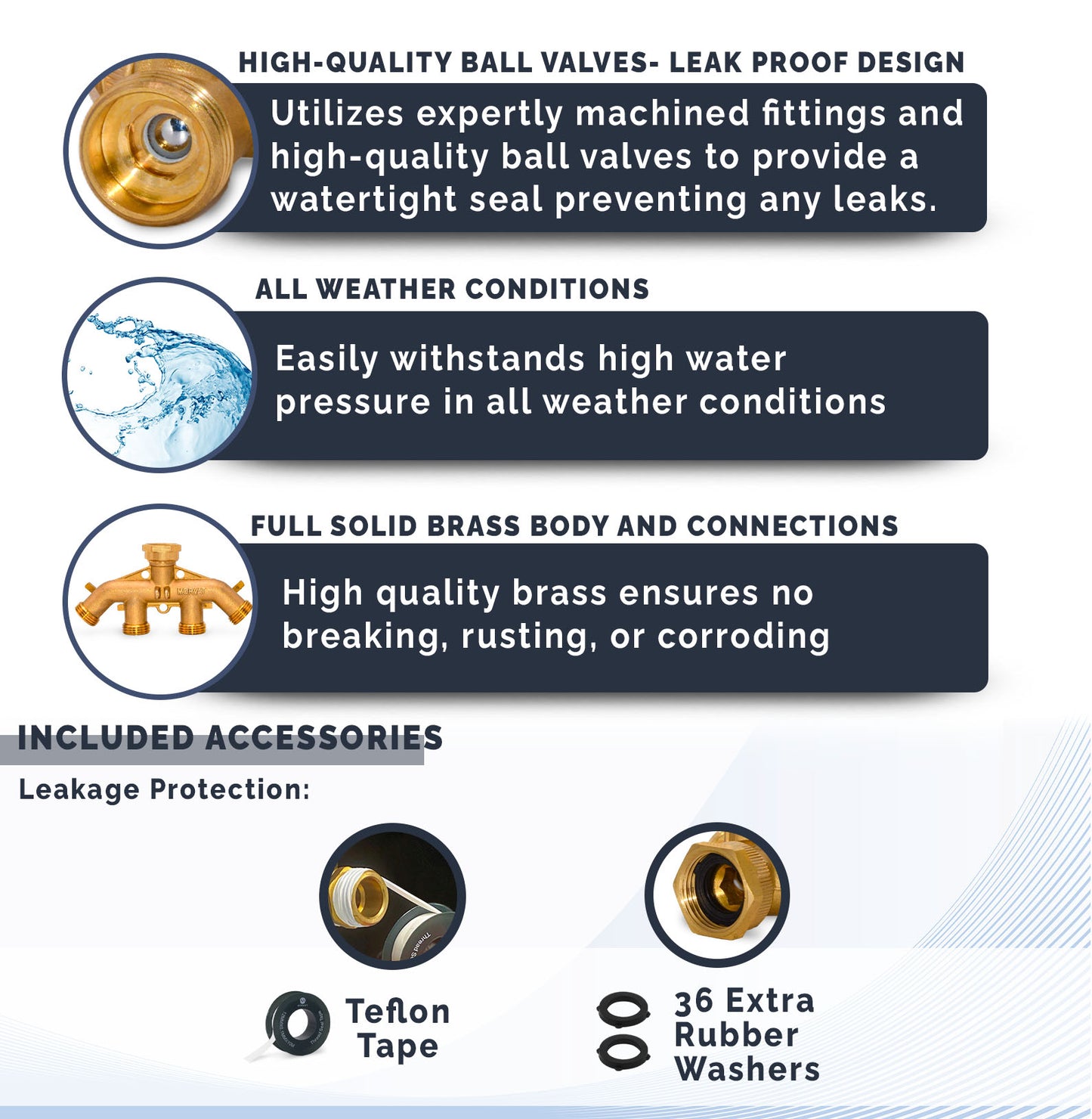 Morvat Heavy Duty Hexagonal Brass 4 Way Garden Hose Y Splitter