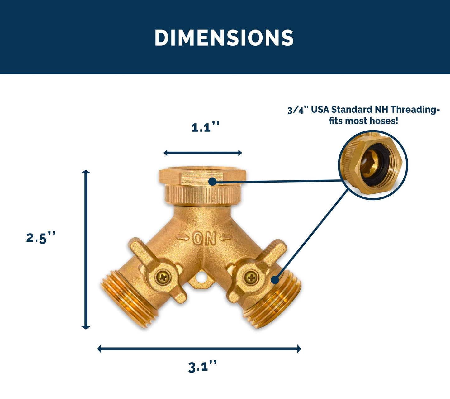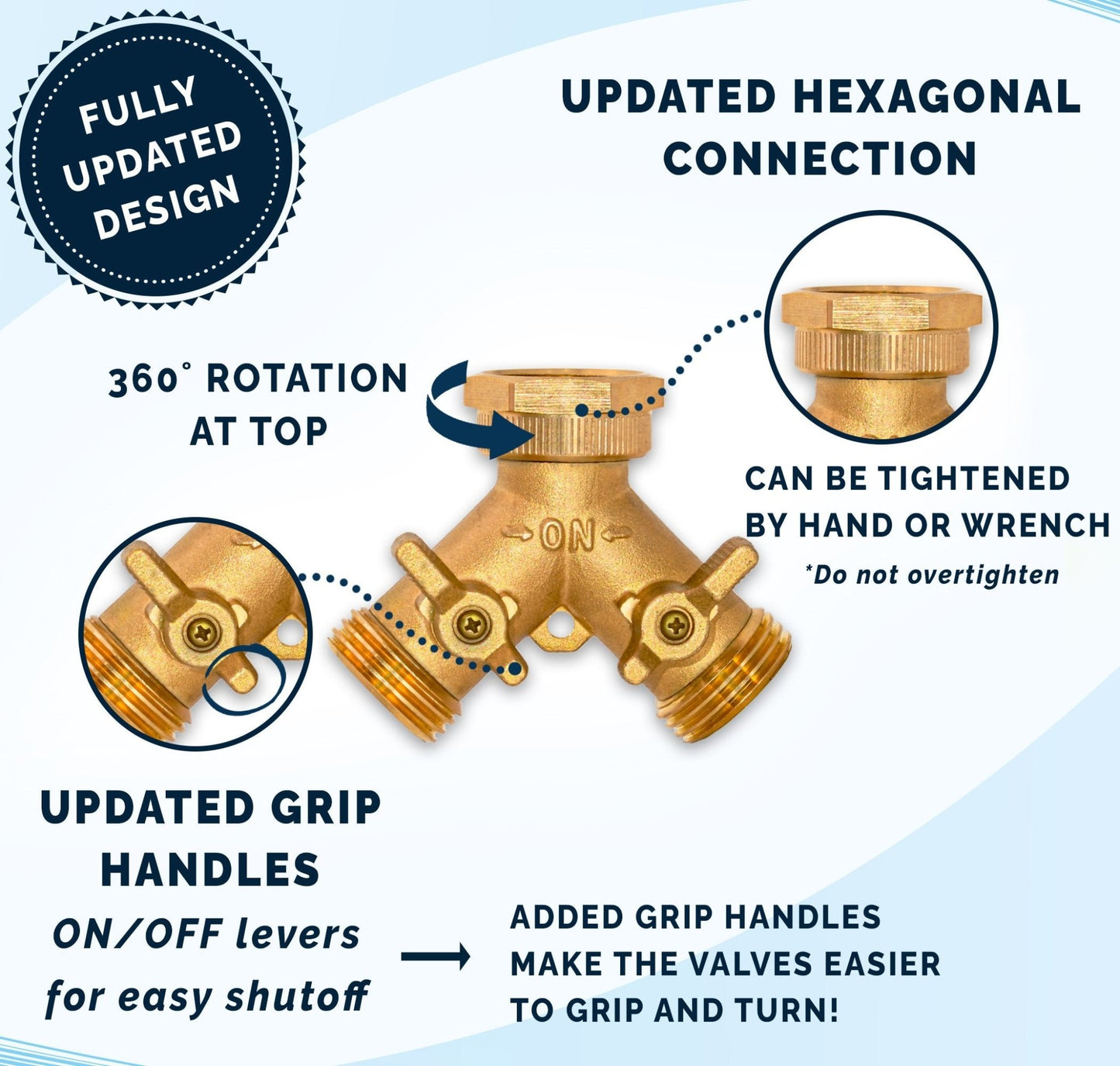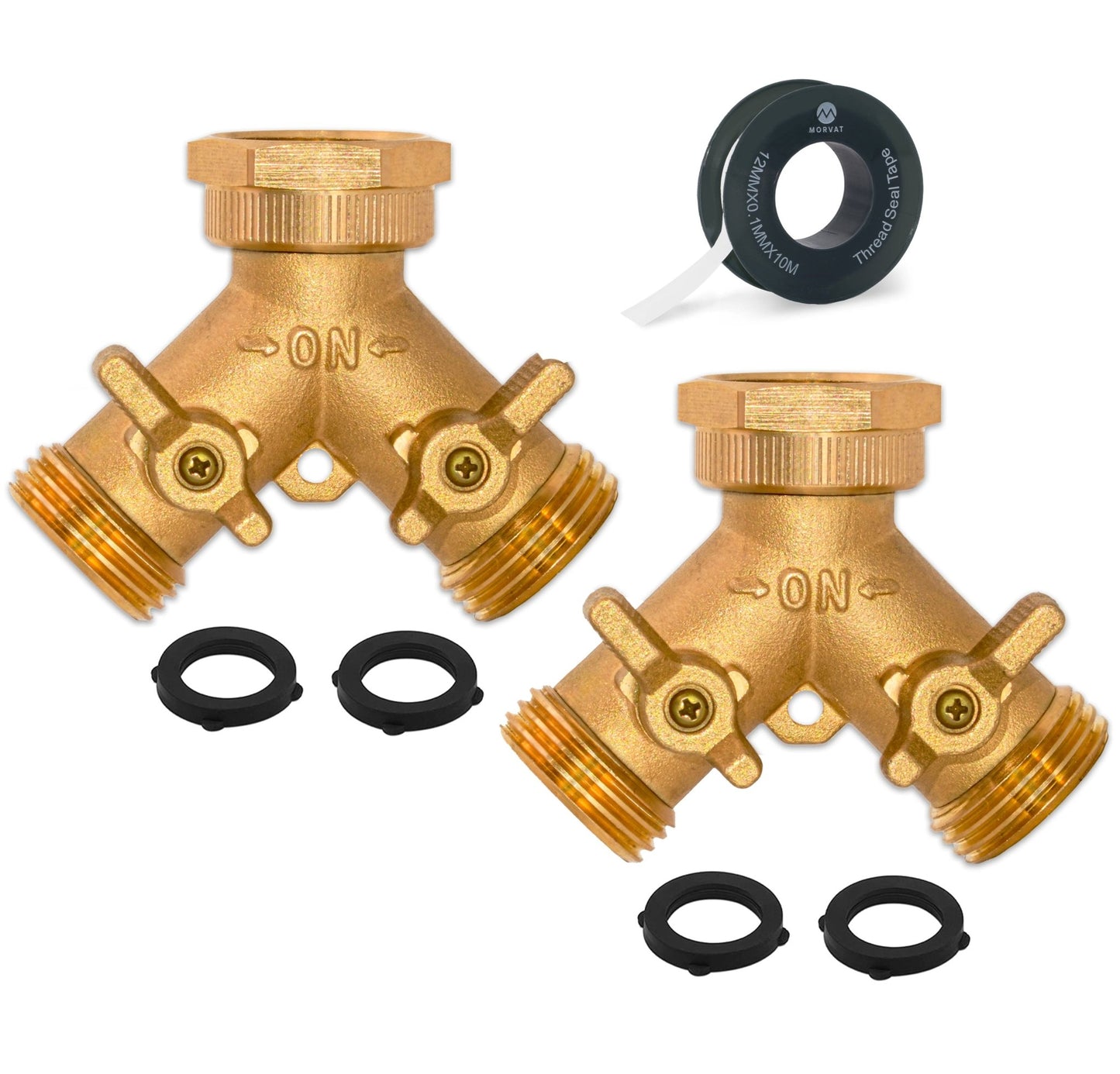 Morvat Heavy Duty Hexagonal Brass 2 Way Garden Hose Y Splitter