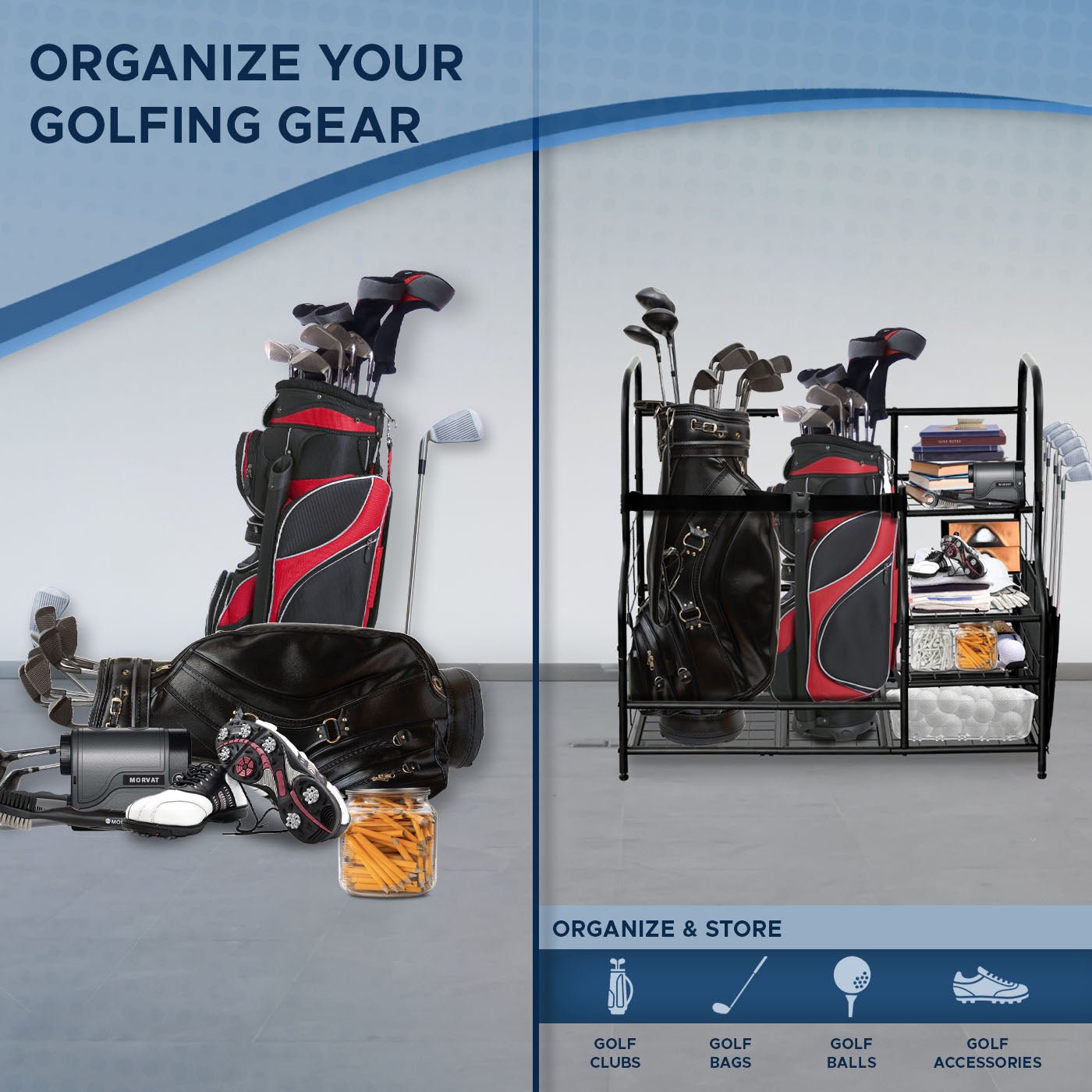 Morvat Double Extra Large Metal Golf Organizer Stand with Club Bag