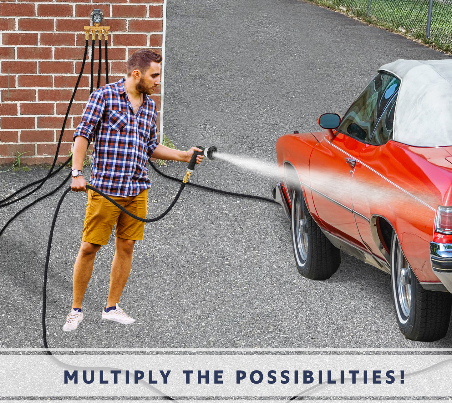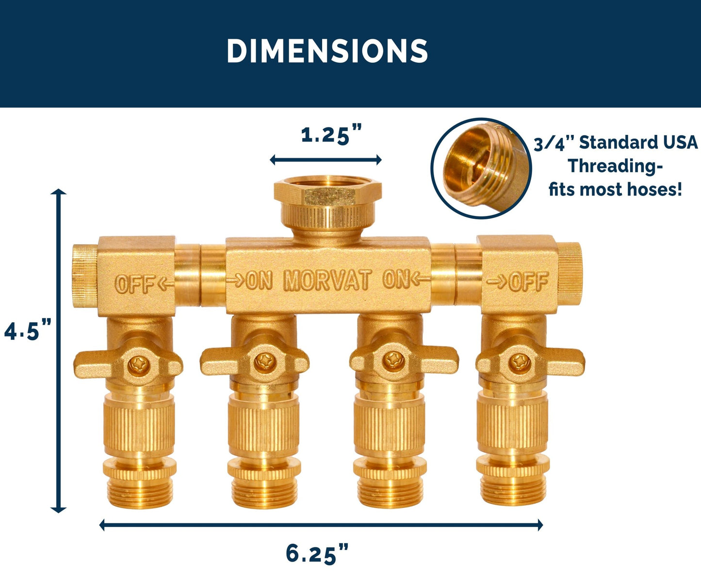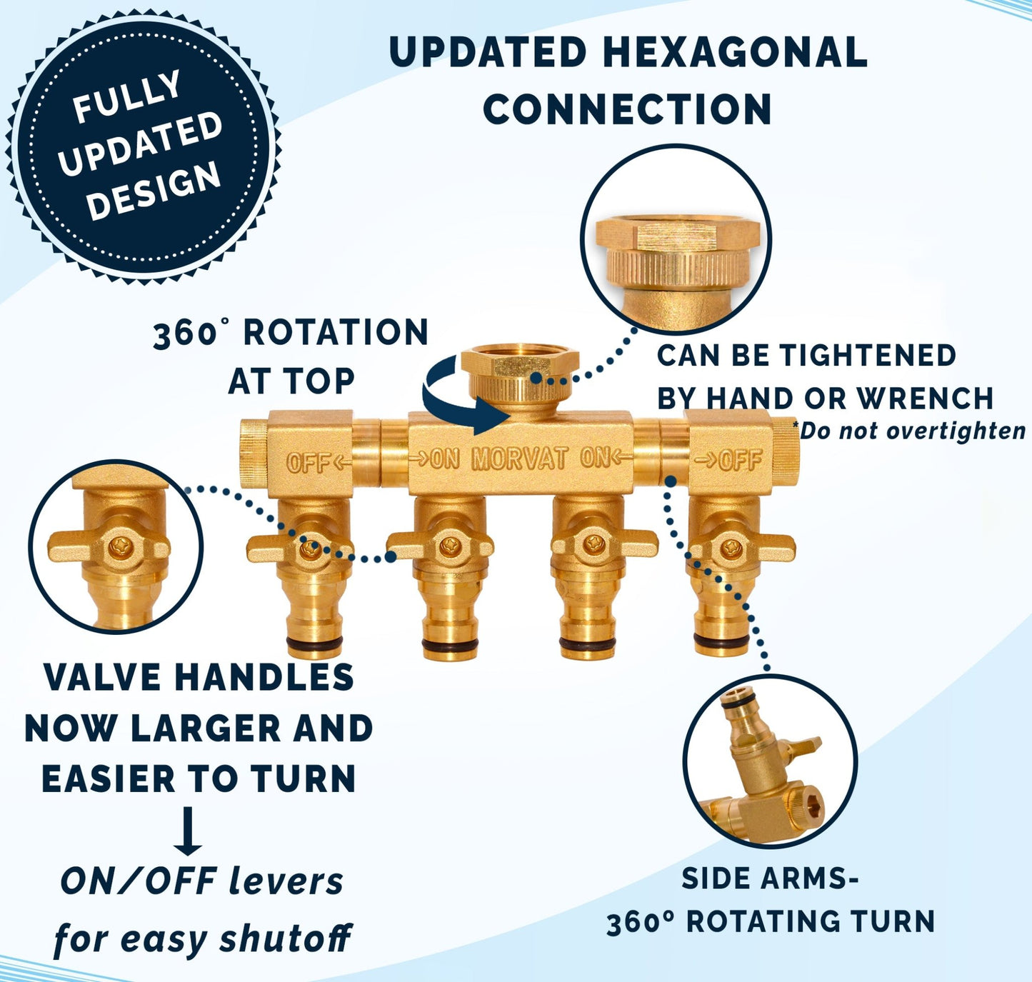 - MULTIPLY YOUR WATER SOURCE: Instantly create 4 tap outlets with this ultra-durable hose splitter adapter. The multiple valve design features built-in shut-off valves with updated & easier to grip handles! The rotating side arms turn a full 360°, making it easy to perform any gardening task.