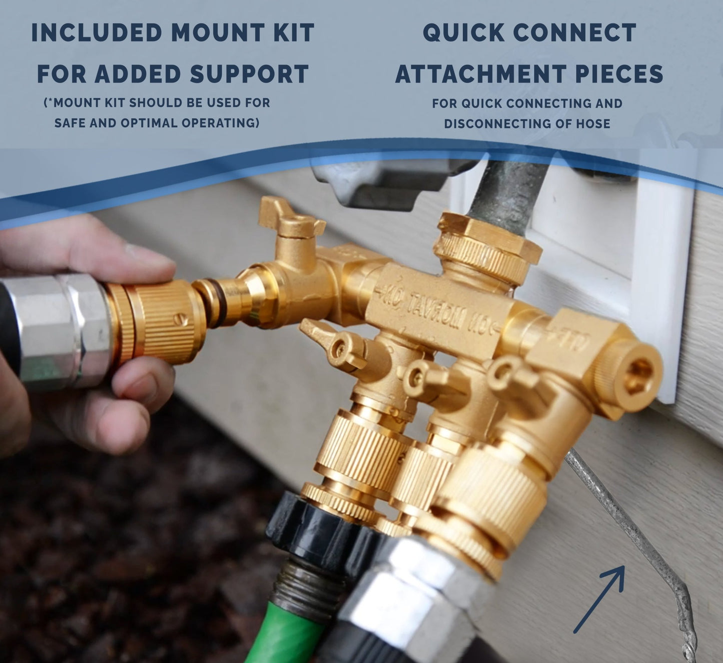 - EASY INSTALLATION: Fits all US Standard 3/4" Garden Hoses. Be sure to make use of the easy-install mounting kit to help keep everything stable when hoses pull in different ways.