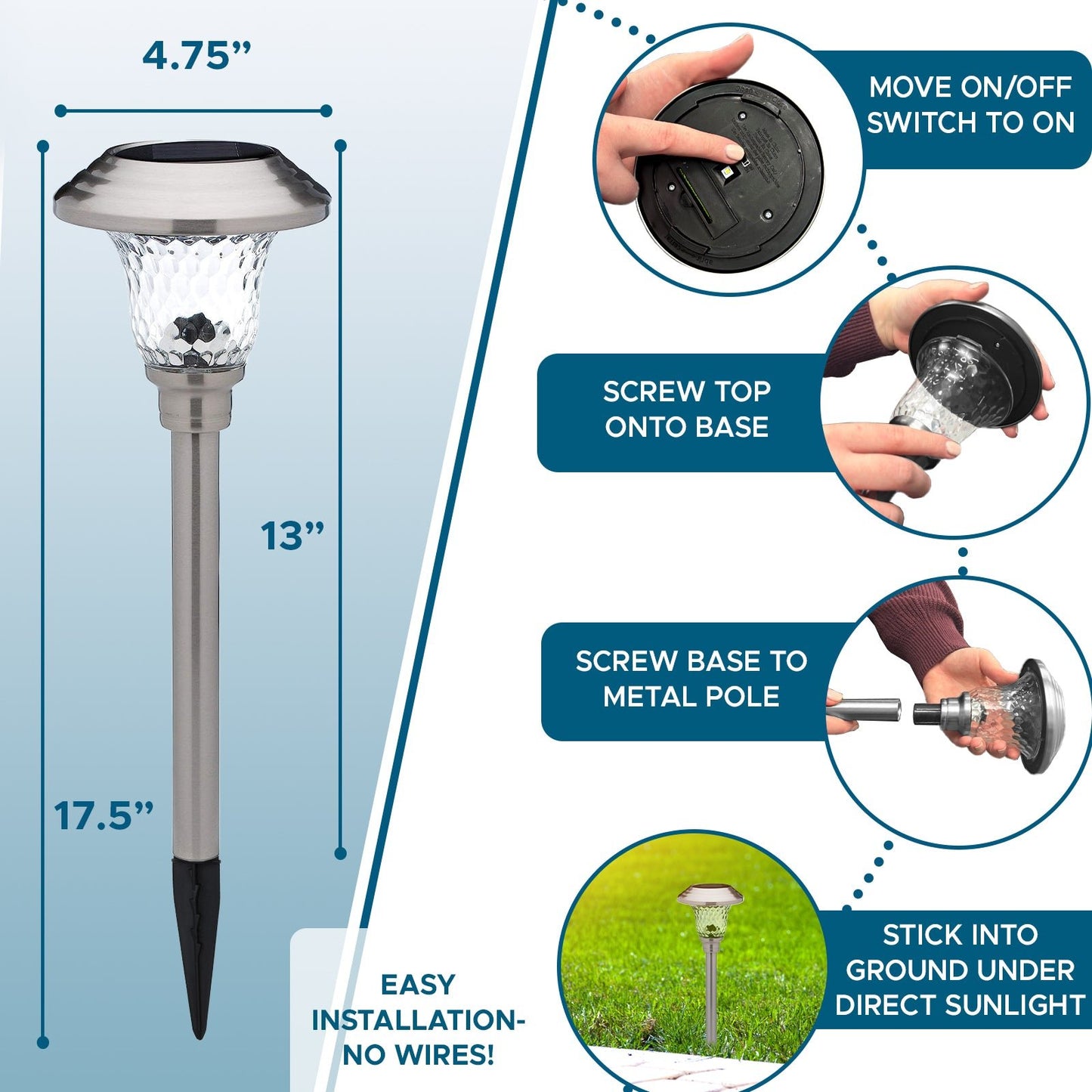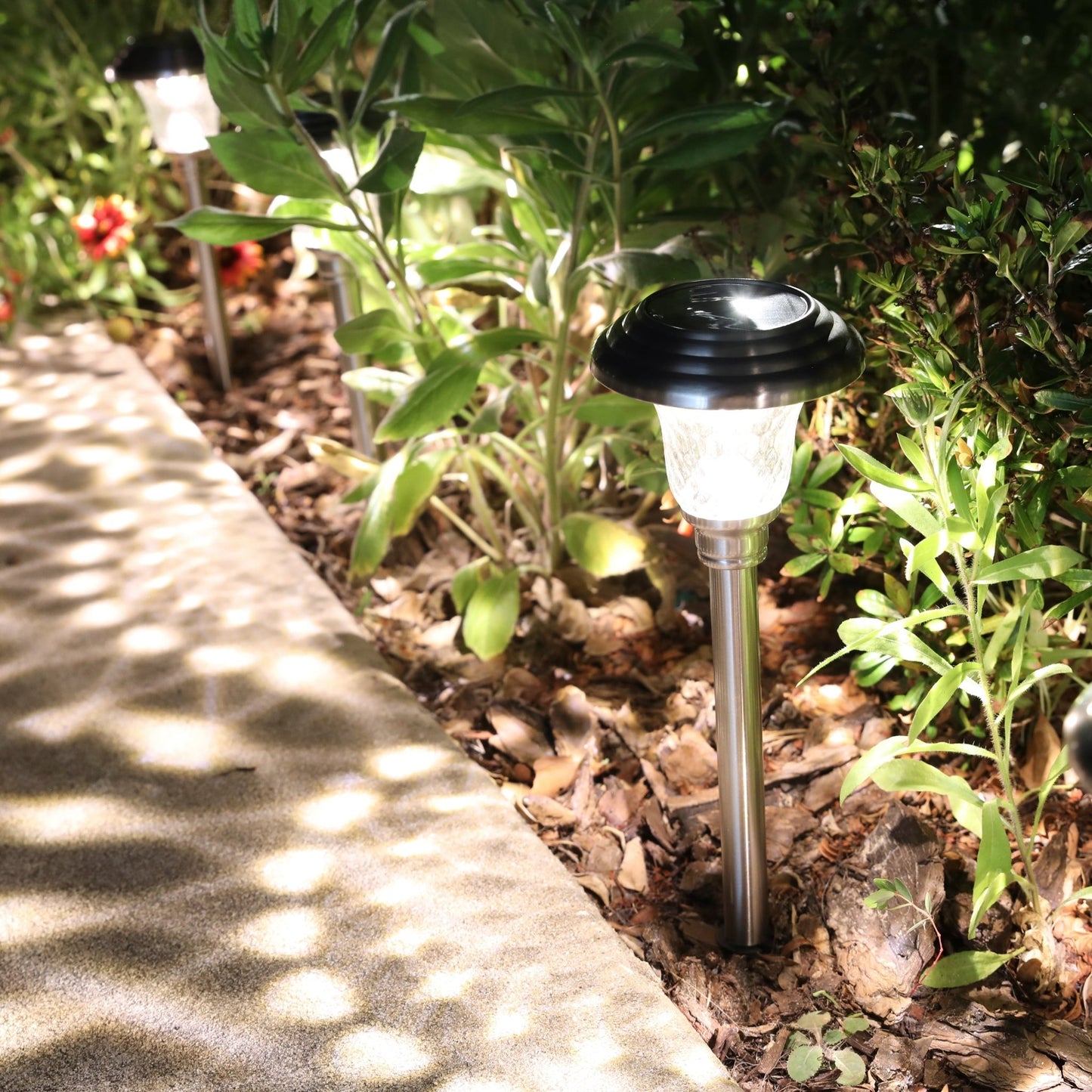 Morvat LED Stainless Steel & Glass Landscape Pathway Solar Lights, 8 Pack