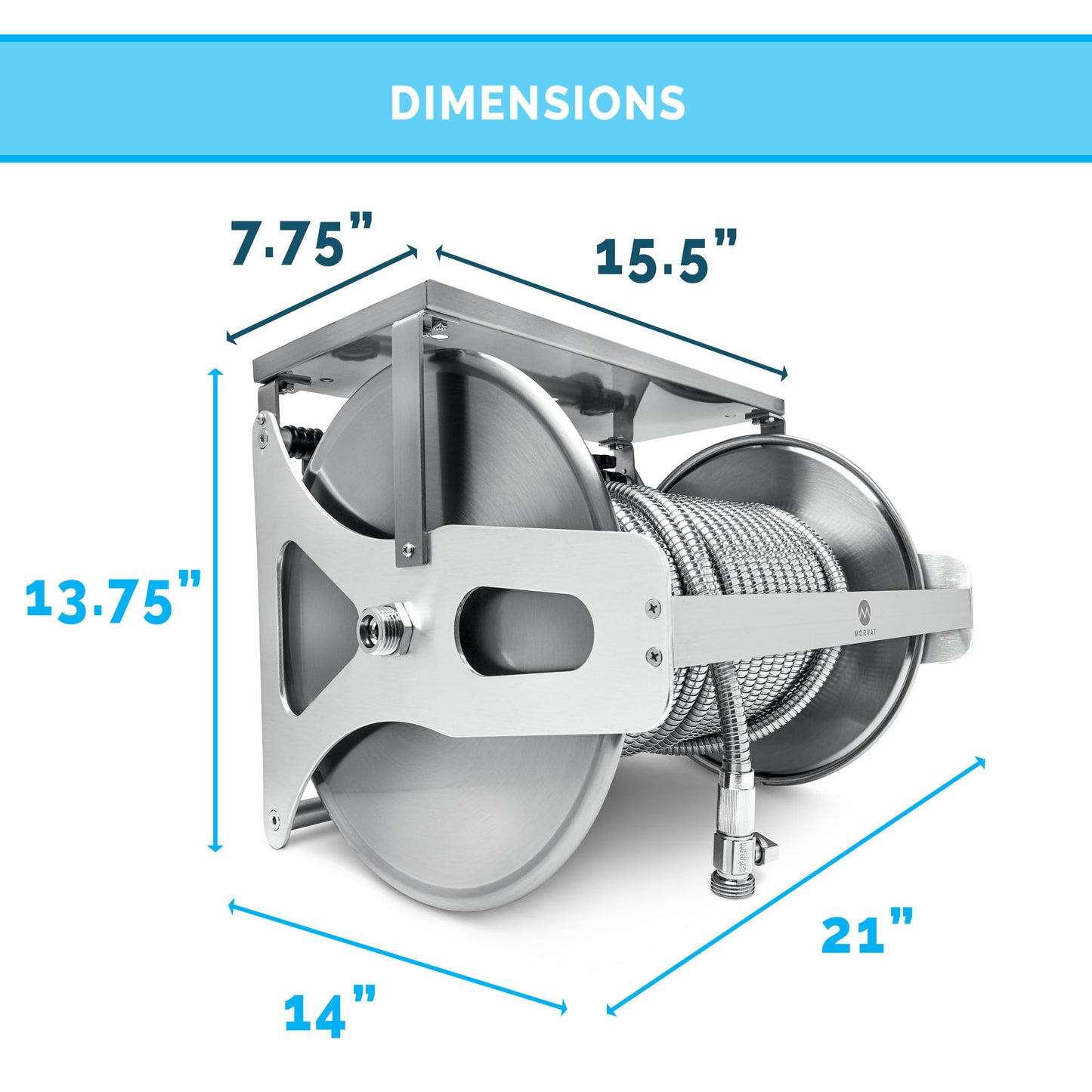 - EXTREME DURABILITY- Constructed from 100% rust resistant stainless steel, this reel will last for years even when faced with high temperature & damp conditions. Enjoy a steady, high pressure, & leak-proof flow of water through the triple reinforced PVC inner stainless-steel hose. Has a PSI of 115 for safe use and up to 345 burst pressure.