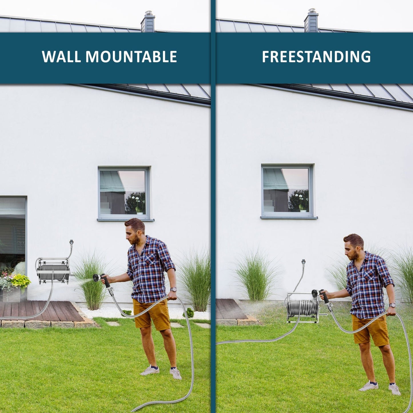 Morvat Stainless Steel Garden Hose Reel with Accessories & Optional 100FT Hose
