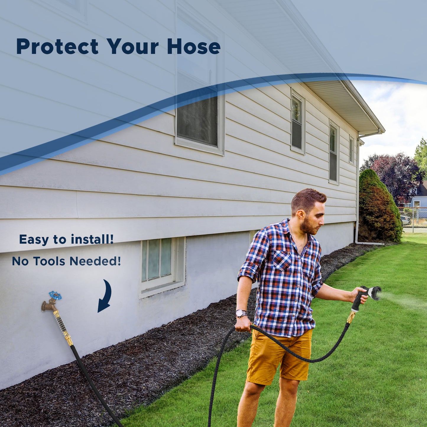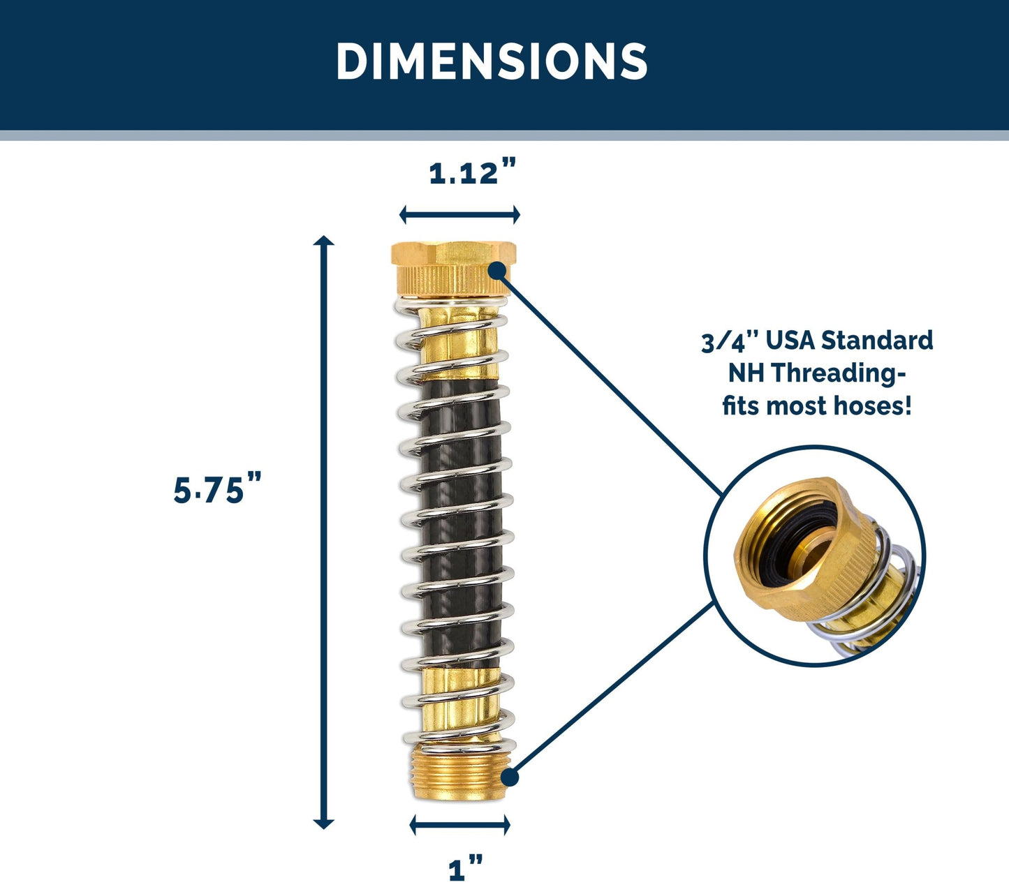- SUPERIOR QUALITY- The durable coiled hose kink protector adapter easily withstands high water pressure in all outdoor weather conditions without breaking, rusting, or corroding. The heavy-duty metal spring protects against kink & strain damage to your hose while effectively extending your garden hose’s life. The solid brass fittings provide a watertight seal preventing any leaks & maintains an even water flow.